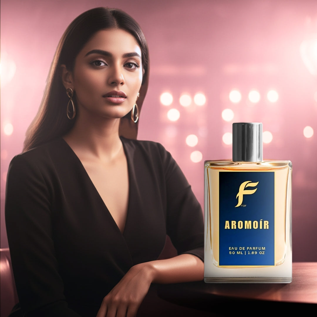 FUJJU Aromoir is an alluring fragrance designed for women. With Warm, Coffee-Vanilla, and Slightly Spicy notes, it creates a captivating and memorable aura. The deep caramel-colored liquid enhances its luxurious feel, making it perfect for daily wear or special occasions. This premium Eau De Parfum offers long-lasting fragrance and elegance.